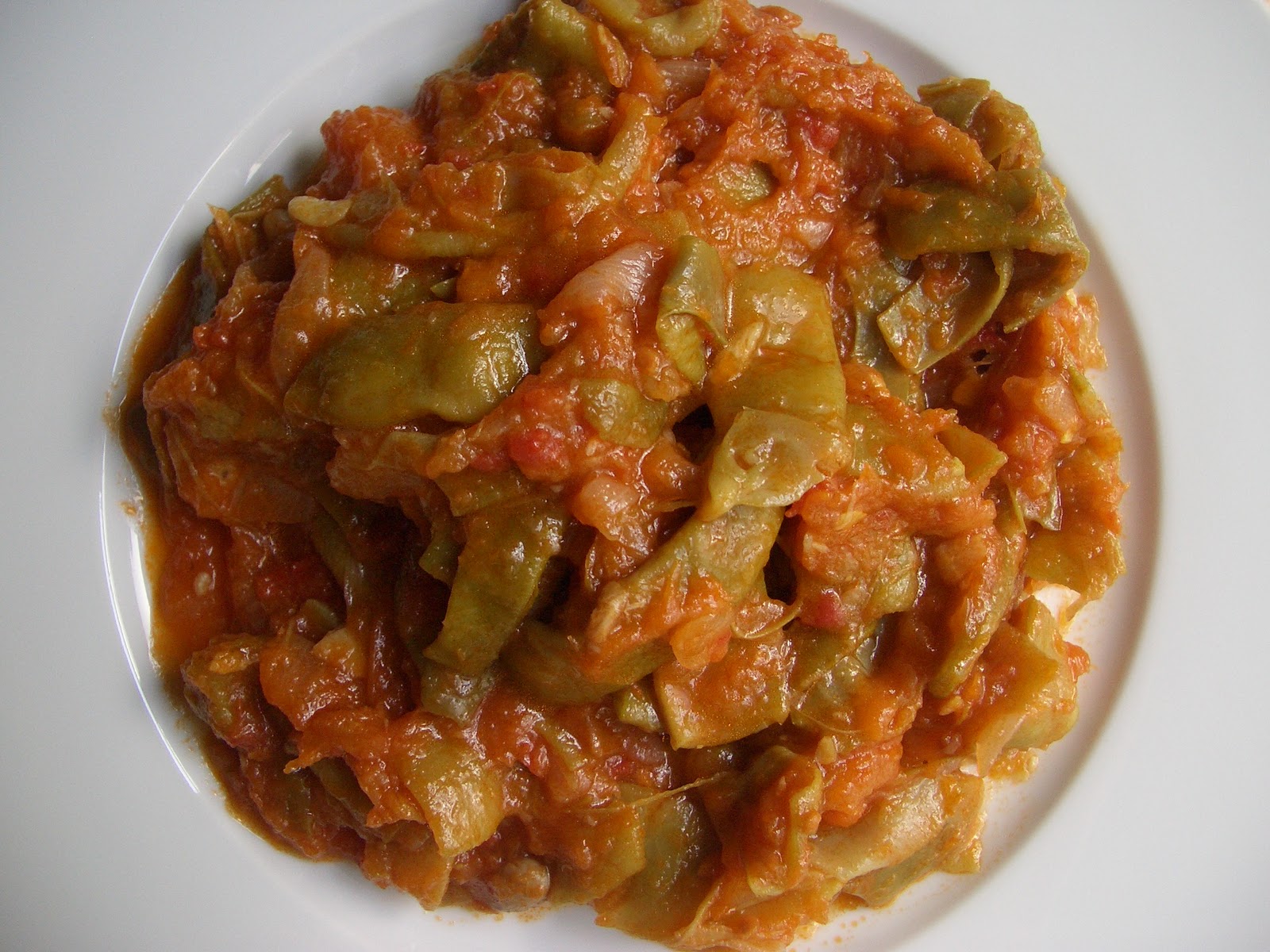 A veces estas verduras nos parecen un plato soso pero con el tomate veréis que bien se lo van a comer todos ya que queda un plato jugoso y rico. El componente vegetal alegrará a los primeros y el cárnico le hará muy feliz a los segundos. 250 g judias verdes 1 patata mediana 100 g de bacon 1 cebolla 1 diente de ajo 2 cucharadas de salsa de tomate piñones pimentón dulce aceite oliva hue. Lengua guisada con papas y chauchas o judías verdes.